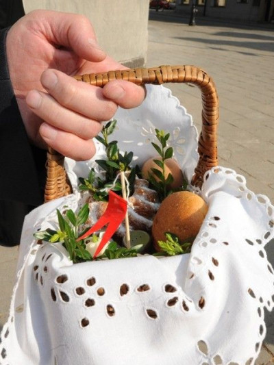 Zgodnie z polską tradycją w Wielką Sobotę udajemy się do kościoła z wiklinowymi koszykami w rękach, by poświęcić pokarmy na świąteczny stół. Zwyczaj ten sięga VIII w., natomiast w Polsce znany jest od XIV w. Kiedyś szlachcic posyłał powóz konny po kapłana, którym dobrodziej przybywał do dworu, by poświęcić cały stół. Obecnie obrzęd święcenia potraw odbywa się najczęściej w kościołach albo przed nimi, na wystawionych stołach. Do koszyka wkładano zawsze pokarmy, które w pierwszy dzień świąt podawane były „bez dymu”, bo przygotowywano je wcześniej i nie wymagały gotowania. W Wielkanoc nie rozpalano bowiem ognia pod kuchnią.